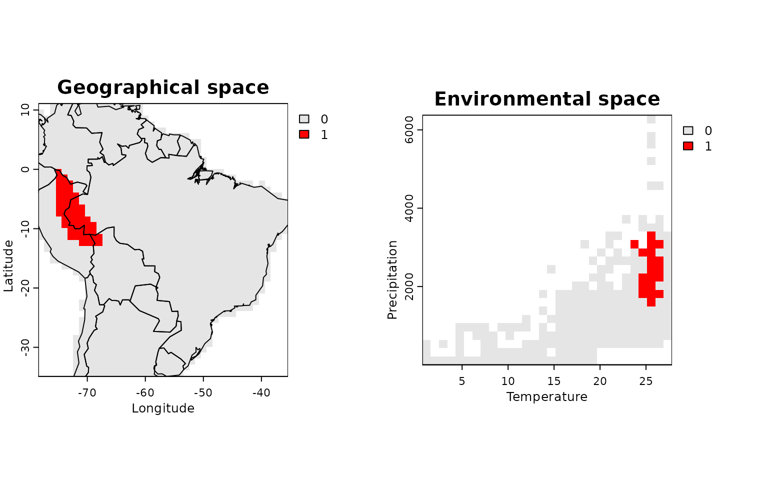 Mapping-species-richness-in-environmental-space.RmdSpecies richness and distributions are often analyzed in geographic space. However, understanding biodiversity in environmental space (e.g., across gradients of temperature and precipitation) is fundamental to further understand ecological communities and species distribution.